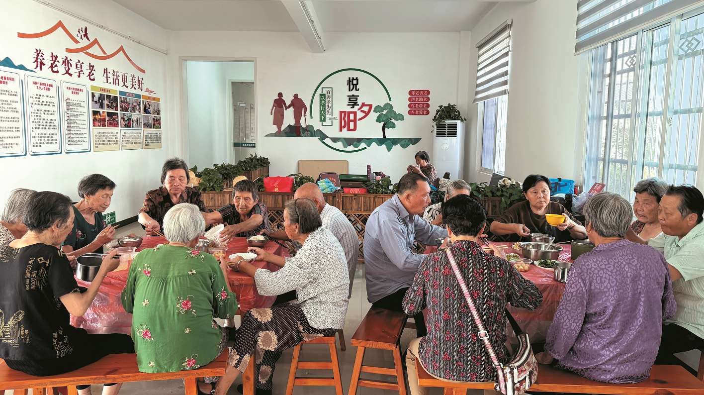 10月9日,嘉鱼县潘家湾镇四邑村幸福食堂,老人们在开心用餐。(湖北日报通讯员卢建 供图)