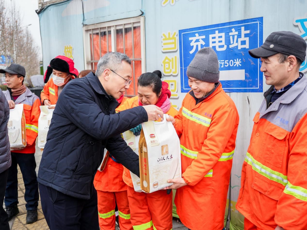 与此同时,致敬“城市守护者”的集中慰问在交通大队、消防站、环卫站、快递站、建筑工地及公交站点同步推进。张家湾社区的环卫工人老邱捧着“暖心包”干劲十足:“春节前的这份关怀,让我们干活更有动力!”环卫工人、快递员、农民工、公交车司机等一线工作者接过慰问物资,脸上洋溢的笑容成为冬日里最动人的风景。