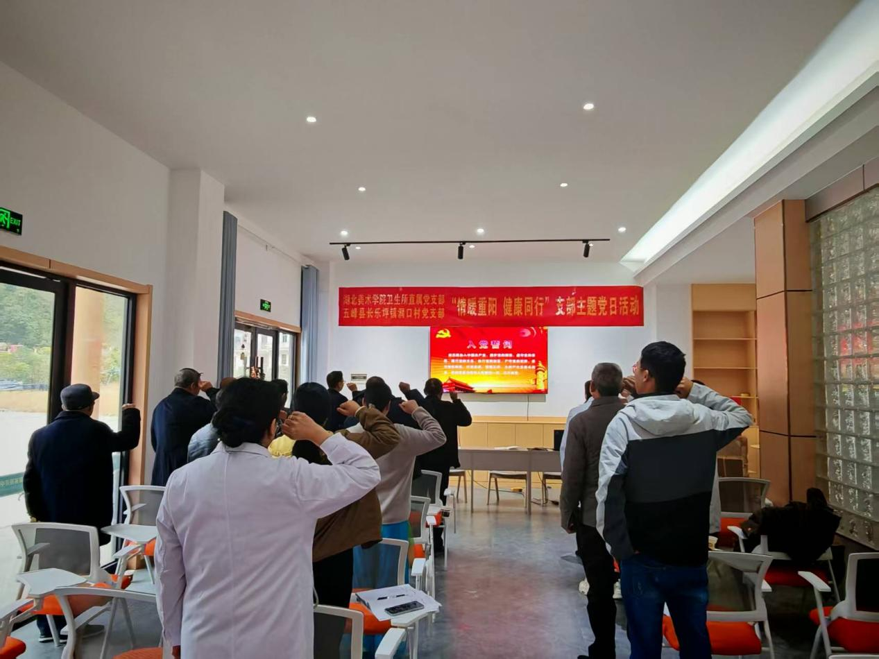活动启幕,按照主题党日规范流程,全体党员重温入党誓词,铮铮誓言与鲜红党旗交相辉映。长乐坪镇镇长杨偲在致辞时表示:“此次联建活动,既是高校党组织赋能乡村振兴的鲜活实践,亦是传承重阳敬老美德的暖心行动,让老党员在组织的关怀中安享幸福晚年。”